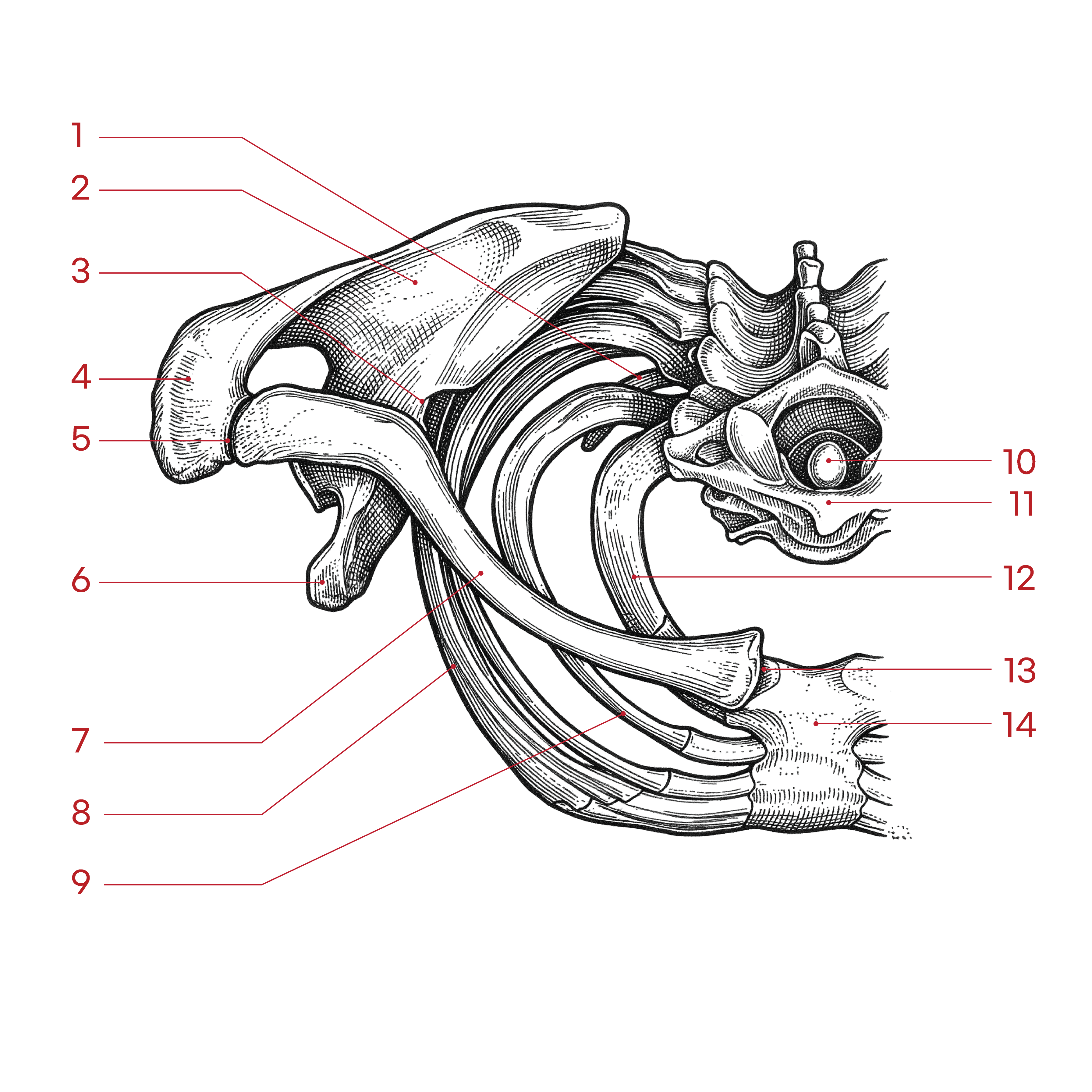 부리돌기 / 오훼돌기 Coracoid process 어깨뼈에서 앞쪽으로 뻗어 나온 까마귀 부리 모양의 돌기
