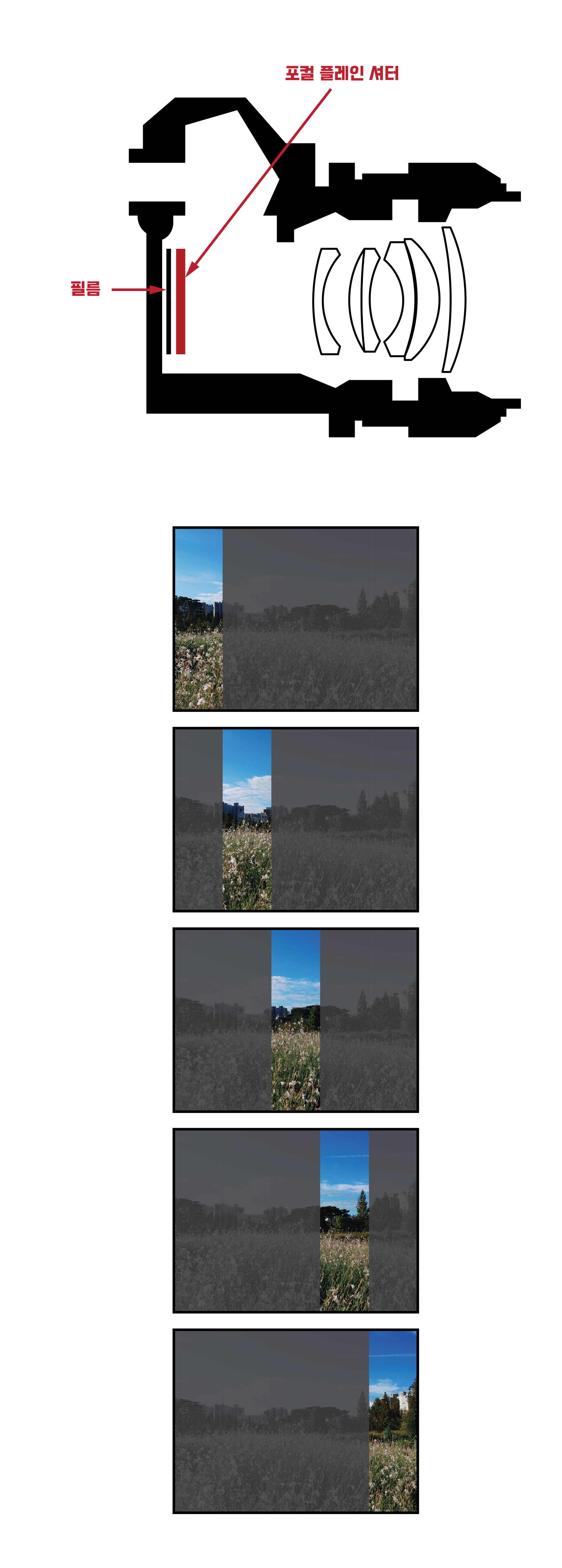 - 피사체가 필름과 평행으로 나란히 움직일 때 상의 움직임이 많이 기록되어 빠른 셔터 속도를 사용하지 않으면 흐린 사진을 얻는다.