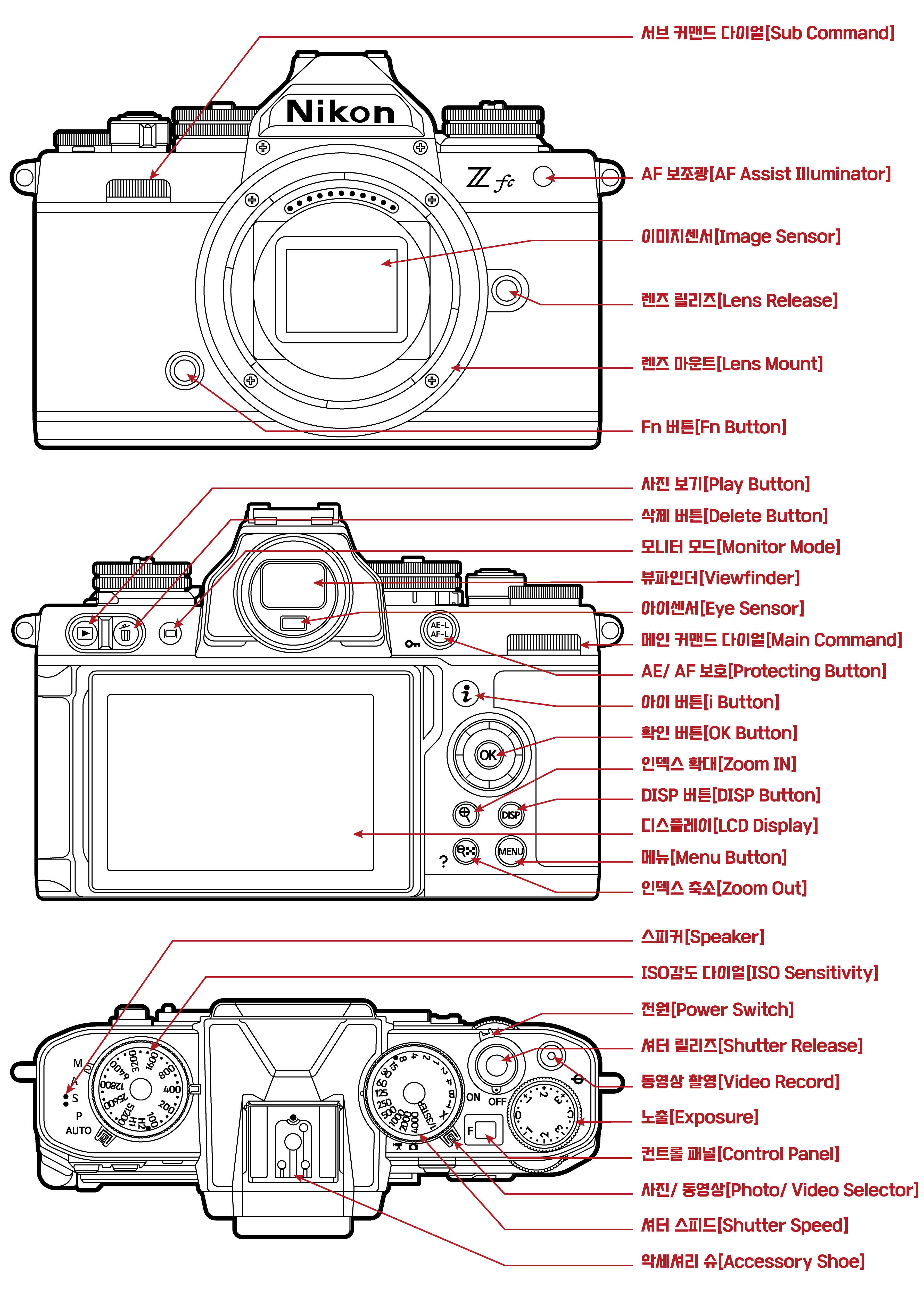 - 풀프레임 바디[Full Frame]는 35mm 필름 규격과 동일한 크기(36 X 24mm)의 센터를 사용하고 넓은 화각과 풍부한 디테일 얕은 심도 표현에 유리하지만 가격이 비싸다.